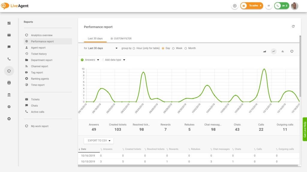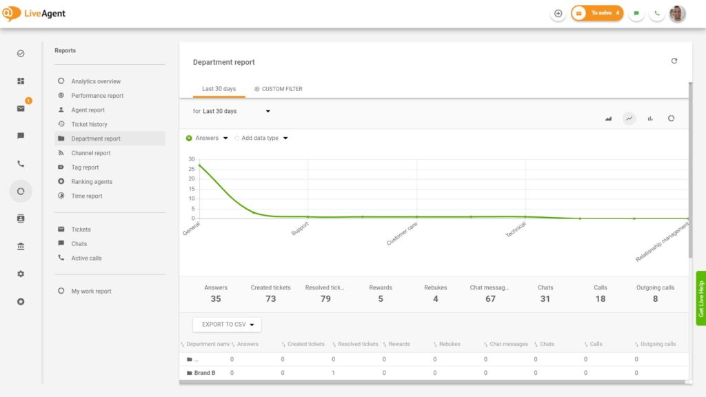 LiveAgent ponuja 11 funkcij poročanja o storitvah za stranke. Spodaj jih podrobno preverite.