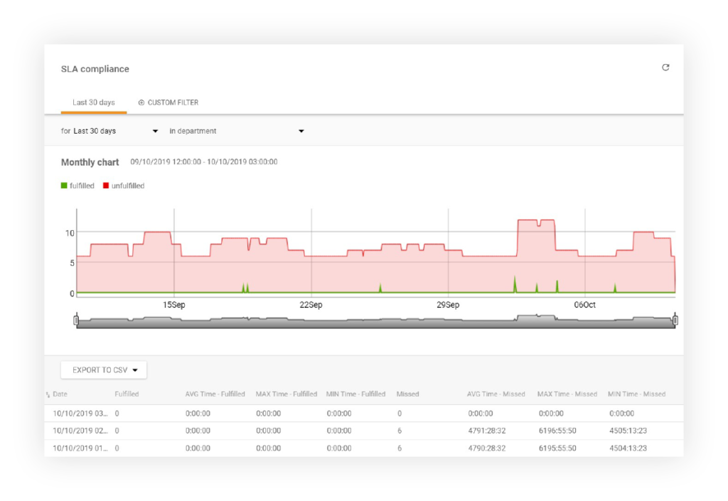 Vsa poročila o skladnosti SLA lahko izvozite v datoteko CSV, da jih lažje delite z višjim vodstvom.
