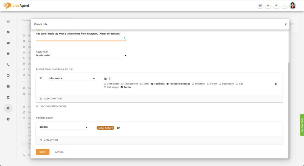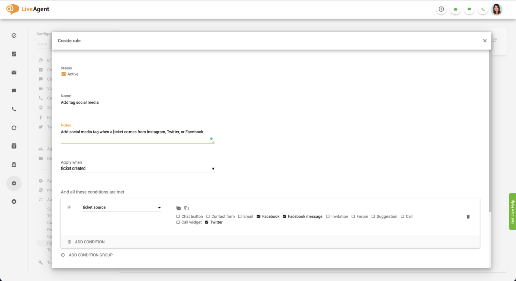 Let LiveAgent add tags to each ticket based on pre-defined rules and enjoy viewing each ticket’s contents at a glance. Try it today.
