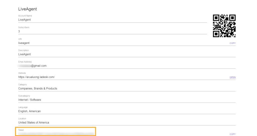 5. Kopirajte žeton in se prijavite v LiveAgent.