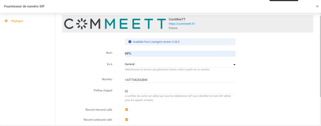 Kako lahko v LiveAgentu implementirate številko ComMeeTT VoIP?