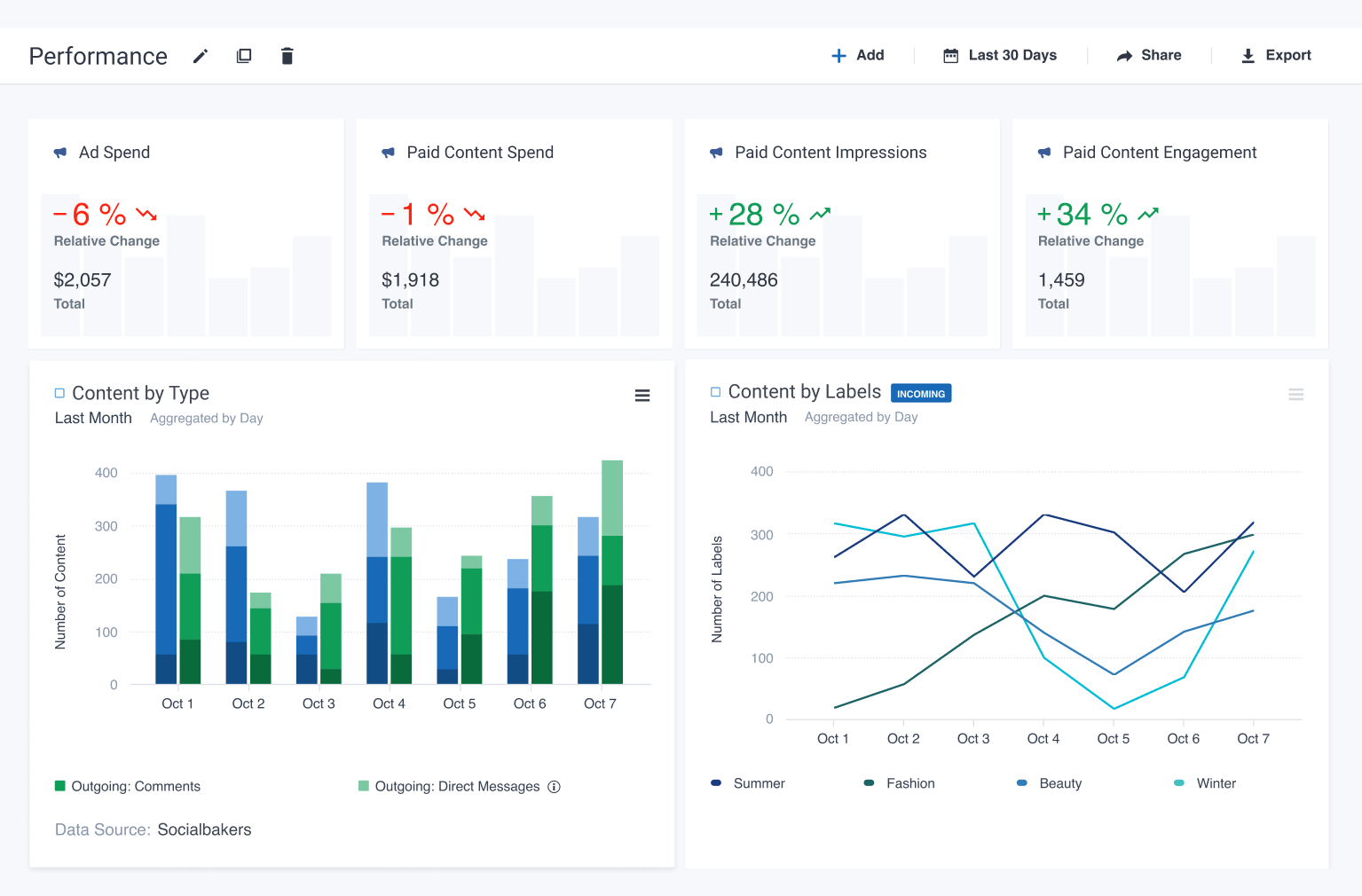 Socialbakers je platforma za družbene medije, ki pomaga podjetjem vseh velikosti biti v stiku z njihovimi strankami. Omogoča spremljanje družbenih omrežij, analizo vsebin in analizo osebnosti s pomočjo umetne inteligence za ustvarjanje najboljših strategij za marketing na družbenih omrežjih.