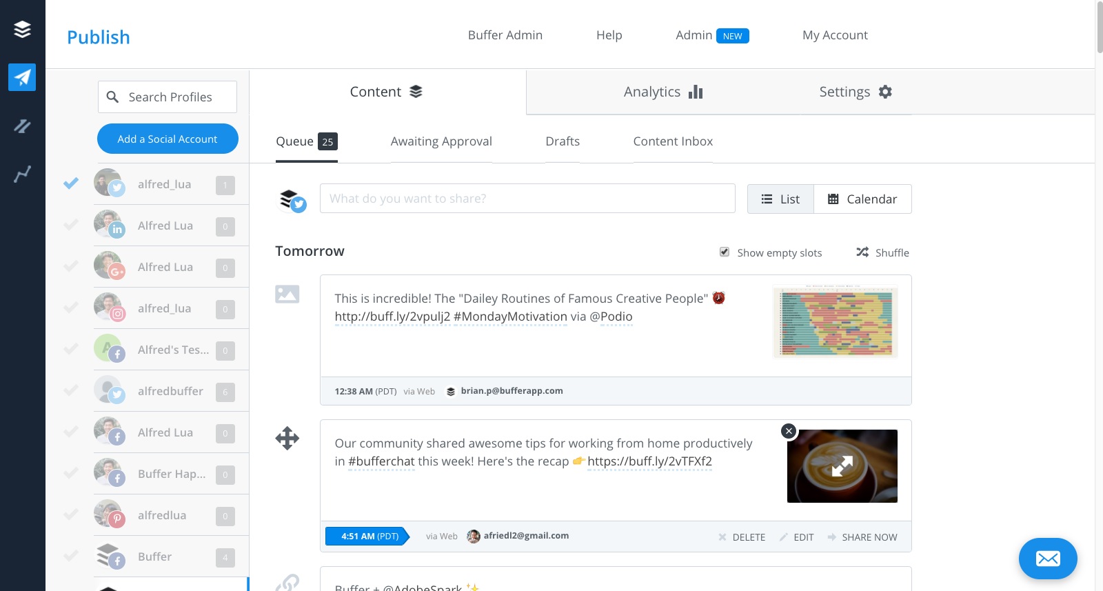 Podobno, kot Socialbakers, je Buffer znan po enostavnosti. Uporabniki hvalijo enostavno pregledovanje izgleda objav in jih urejajo neposredno v aplikaciji. Po drugi strani pa grajajo, da ne omogoča integracije s TikTok omrežjem.