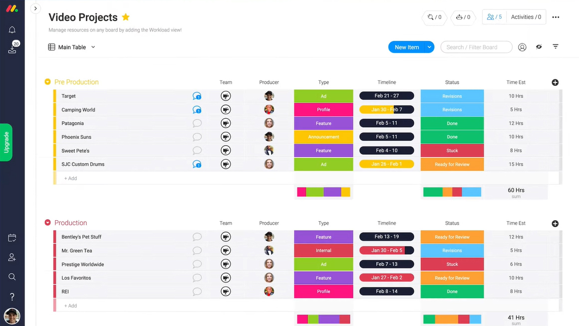 Da bi se izognili človeškim napakam in ponavljajočim se opravkom, lahko Monday.com uporabniki izkoristijo avtomatizacijo in imajo pregled nad svojim delom v koledarju, na časovnici ali na vmesniku v stilu kanban.