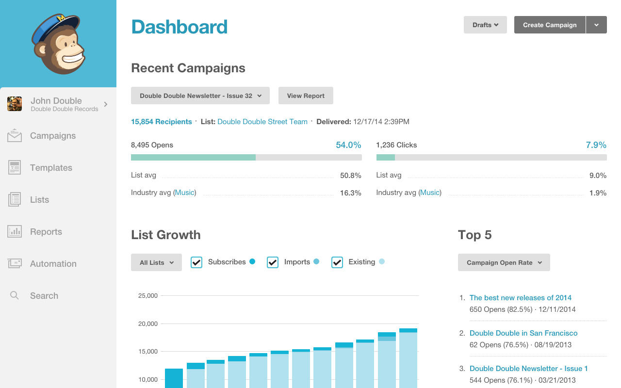Uporabniki MailChimp so navdušeni nad uporabnostjo in enostavnostjo njegovih orodij za mala podjetja. Na primer, primi in spusti urejevalnik elektronskih sporočil, s katerim lahko ustvarjate lepa sporočila. Radi imajo tudi široko izbiro integracij, ki olajša sinhronizacijo z zunanjo opremo CRM.