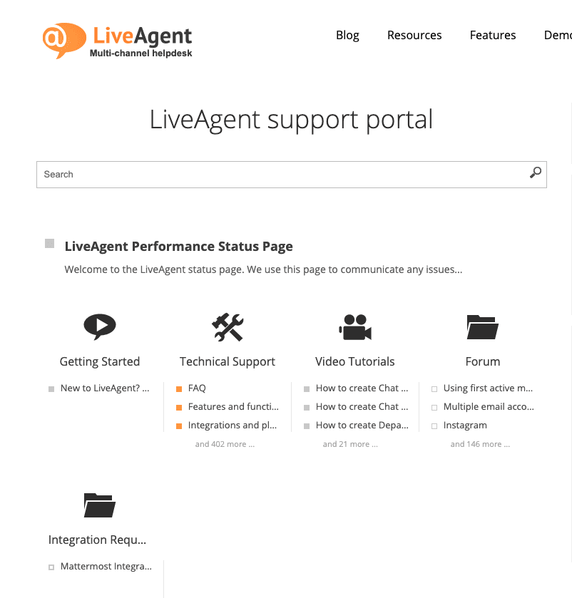LiveAgent ponuja številne funkcije, ki podjetjem pomagajo pri povezovanju s strankami. Svojim strankam ponuja tudi obsežno knjižnico virov. Ti viri vključujejo objave v spletnem dnevniku, predloge, glosarje, teste tipkanja, vtičnik WordPress, imenike, spletne seminarje, akademijo in še veliko več.
