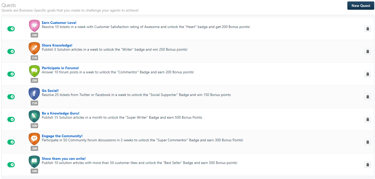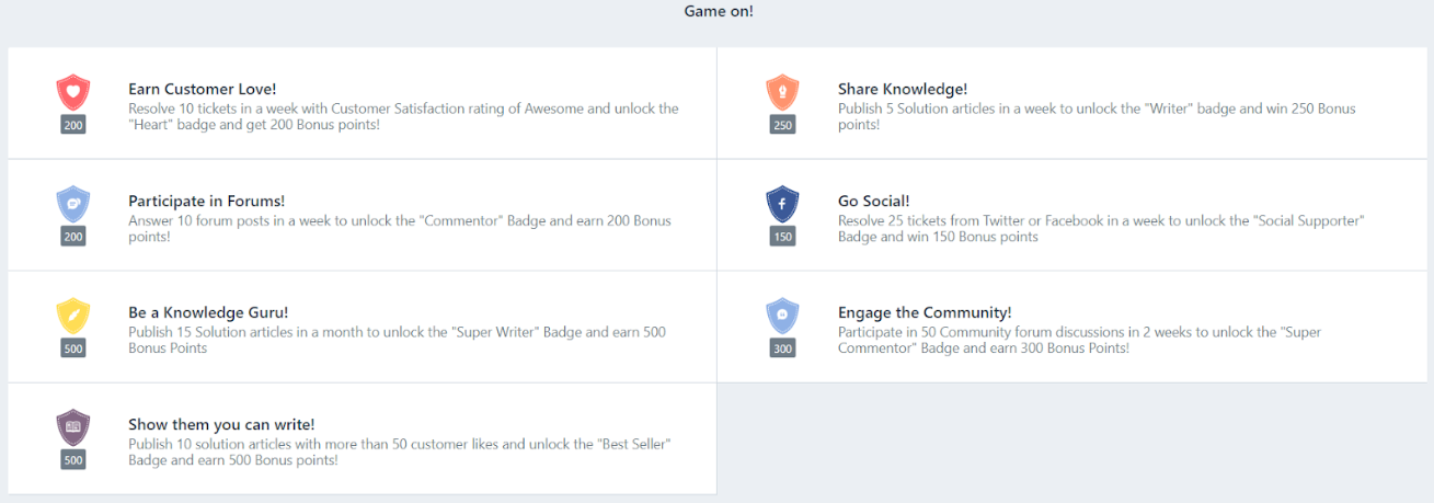 Ko je vsa vaša ekipa za podporo razvrščena in pripravljena na delo, zakaj ne bi celotnemu procesu storitev za stranke dodali malo zabave? Tu pridejo v poštev Freshdeskove funkcije igrifikacije.