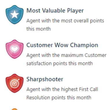 Po mojih izkušnjah s funkcijami igrifikacije Freshdesk sem ugotovil, da obstajajo štiri različne trofeje, podeljene agentom na podlagi njihove meritve uspešnosti. Prvi je pokal za najkoristnejšega igralca, ki ga prejme agent z najvišjimi skupnimi točkami v tekočem mesecu. Druga trofeja je Customer ‘Wow’ Champion, ki se podeli agentu z največjim številom točk zadovoljstva strank v mesecu. Tretjo trofejo, imenovano Sharpshooter, prejme agent z najvišjimi točkami razrešitve prvega klica v mesecu, kar pomeni, da je lahko rešil vstopnice s samo eno interakcijo. Četrti pokal, Speed Racer, gre agentu z največjim številom točk za Fast Resolution, ki potrjuje njihovo sposobnost reševanja kart v manj kot eni uri. Odlično pri tem sistemu je, da se lestvica najboljših ponastavi prvega v mesecu, kar vsem omogoča nov začetek. Kot agent si lahko ogledate imena tistih, ki trenutno vodijo na lestvici najboljših, neposredno z nadzorne plošče.