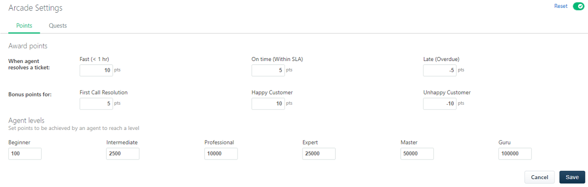 Ko nastavite pravila igrifikacije v skladu z vašimi željami, bo Freshdesk začel slediti zahtevanim podatkom na podlagi kriterijev, ki ste jih nastavili. Poleg nastavitve sistema vam ni treba storiti ničesar drugega. Agenti prejmejo točke ali značke, ko izpolnijo določene pogoje – vse poteka samodejno.