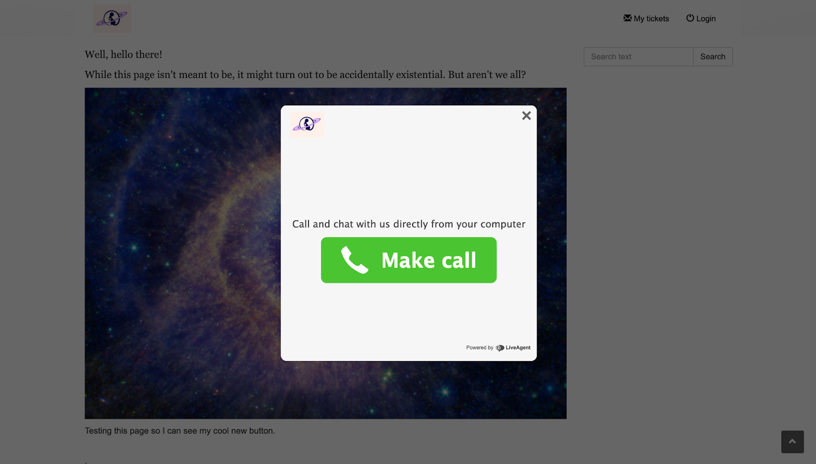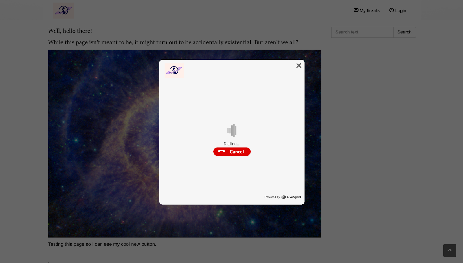 Čas za testiranje! Imel sem odprta dva zavihka, prvi je bil nadzorna plošča mojega agenta za stranke, drugi pa moja baza znanja z gumbom »Pokličite nas«. Vse je v redu, zato sem se odločil, da naredim oboje prek istega brskalnika in vidim, ali bodo težave ali ne.