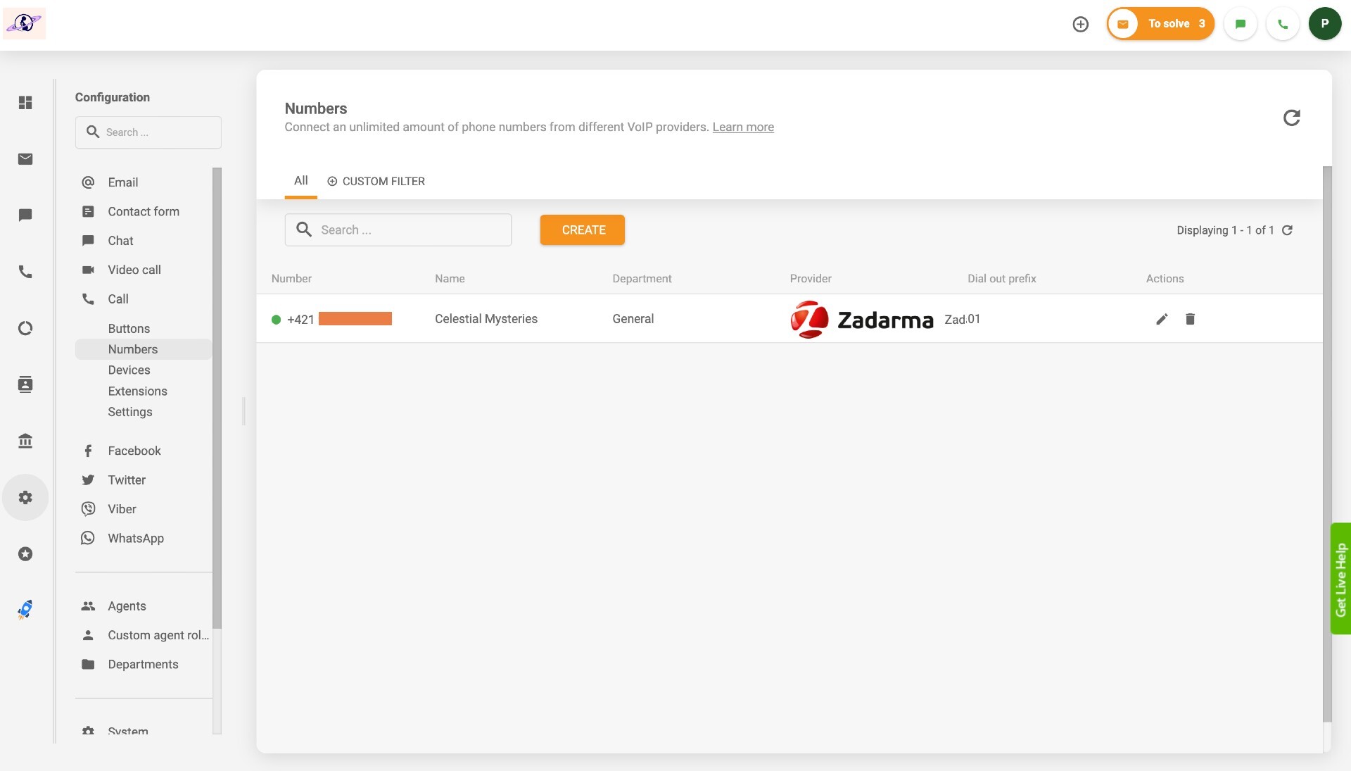 Seveda sem šel na Pokliči > Številkein tam kliknili na oranžni gumb “Ustvari” in dodali številko iz storitve Zadarma VoiP. Ponudnikov storitev telefonskih številk je veliko, zato lahko poiščete tistega, ki ga uporabljate, ali pa preprosto vnesete splošno telefonsko številko VoIP, če svojega ponudnika VoIP ne vidite na seznamu. Ko sem vnesel ustrezne podatke, sem samo kliknil »Dodaj« na dnu in moja povezana številka se je prikazala z zeleno piko zraven. Zdi se mi kot zelena luč, zato mislim, da je dobro, da grem!