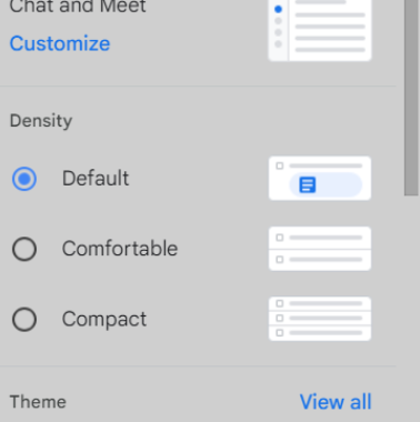 Prvič, kot mnogi drugi, sem takoj preklopil na temni način z izbiro teme. To lahko storite v spustnem meniju z nastavitvami ali pa kliknete Ogled vseh nastavitev in tam izberete temo. Čeprav je Gmail ponujal veliko barvnih kombinacij in ljubkih tem, sem se odločil za preprosto temno temo, ki je mnogim ljudem tako blizu in pri srcu.