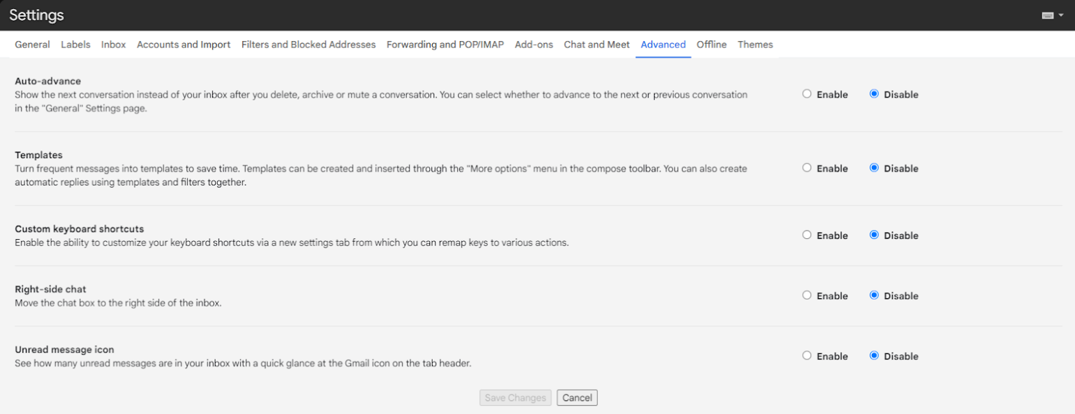 Obstaja veliko drugih funkcij, ki jih ponuja Gmail. Od konfiguracije Chat and Meet do omogočanja bližnjic na tipkovnici po meri in predlog, obstaja množica možnosti, ki jih lahko raziščete.