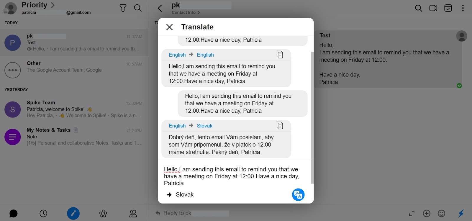 Druga odlična lastnost je prevajalnik. V nekaj sekundah lahko prevede vaša sporočila v številne jezike, kar omogoča preprosto komunikacijo, če imate mednarodne stike. Preprosto morate klikniti »tri pike« poleg sporočila in izbrati »Prevedi«.