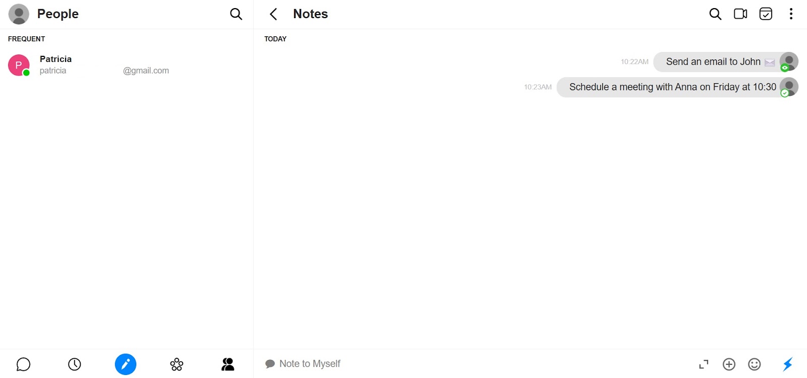 Zadnji je »Stiki«. Tukaj si boste lahko ogledali seznam vseh stikov, ki ste jih shranili v Spike, dodali nove stike in si pošiljali opombe. Opombe lahko pošiljate tudi sebi.