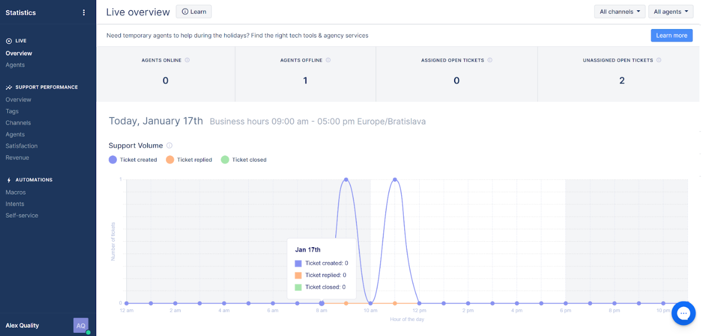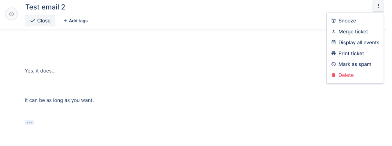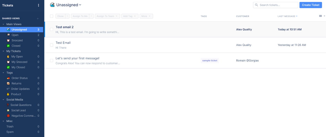 Gorgias ponuja tudi druge funkcije, kot so razdelitev vstopnic, dremež, označevanje SPAM in še nekaj več. Dodate lahko oznake ali dodelite vstopnice določenim ekipam. Nisem našel nobenih funkcij za delitev vstopnic ali česa dodatnega. Medtem ko te funkcije zadostujejo za učinkovito komuniciranje in obravnavanje poizvedb prek izdajanja vozovnic, bi bilo lepo imeti nekaj dodatnih funkcij za podrobnejše reševanje težav.