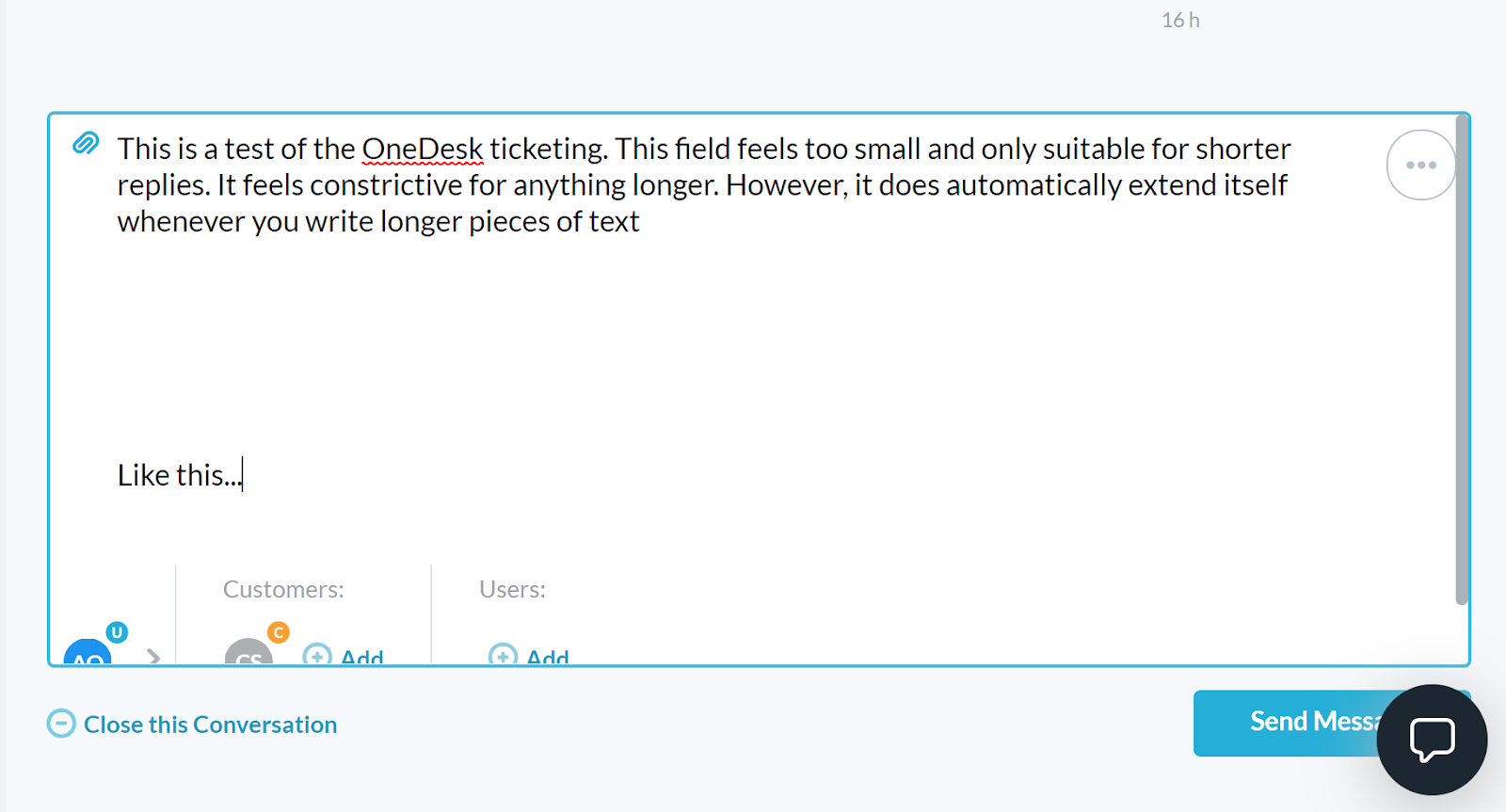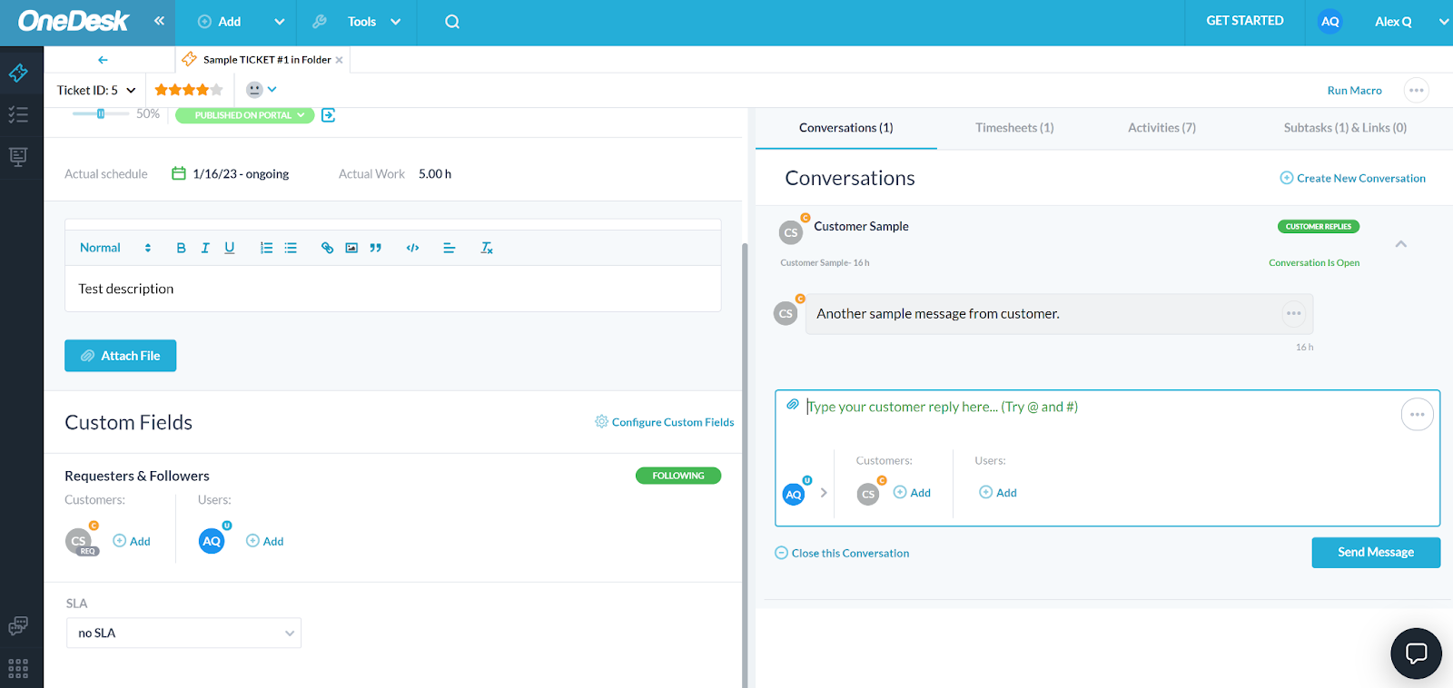 Sam sem preizkusil sistem izdajanja zahtevkov. Poudarek je predvsem na izkušnji agenta in enostavnosti uporabe. Uporabil sem svoj e-poštni naslov, da sem začel pogovor sam s seboj in ustvaril nov dohodni zahtevek v sistemu za zahtevke OneDesk. Ko je e-pošta prispela, sem začel odgovarjati. Vmesnik v odprtih zahtevkih ni zasnovan zelo dobro; je precej zmeden in izgleda zelo natrpan. Uporaben je, vendar ni najboljši dizajn za enostavno navigacijo.