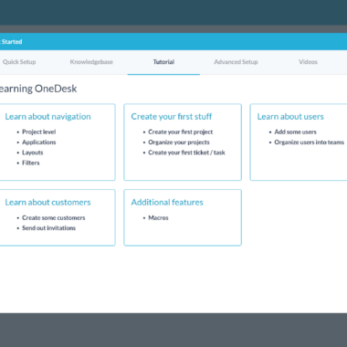Priporočam, da tega vodnika ne preskočite, saj lahko najprej poskrbite za nekatere pomembne stvari. Nastavite lahko svojo profilno sliko in podpis, povežete svojo e-pošto za podporo iz Outlooka ali Gmaila, izberete alternativno posredovanje e-pošte, povabite svoje sodelavce in še veliko več. Še pomembneje je, da lahko nastavite druge funkcije OneDesk, kot je upravljanje znanja, in si ogledate kratko vadnico, da prejmete pregled nad aplikacijo.