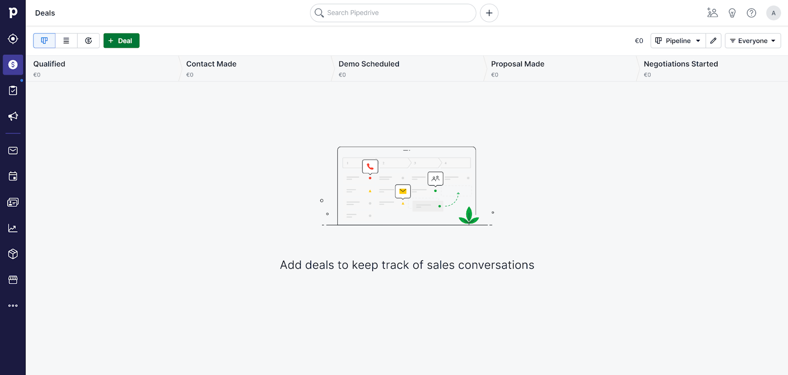 Začetek uporabe PipeDrive je hiter, ovira vas le kratka registracija. Ko končate z njim, si lahko začnete ogledovati armaturno ploščo. PipeDrive ni namenska rešitev za klepet v živo, zato je uporabnikom na voljo množica možnosti in orodij, s katerimi se lahko igrajo. Kljub temu je vmesnik videti precej čeden. Je zelo dobro uglajen, čist in je preprosto videti namensko, tako da ne bi smeli imeti težav pri dostopu do katere koli funkcije, ki jo boste iskali.